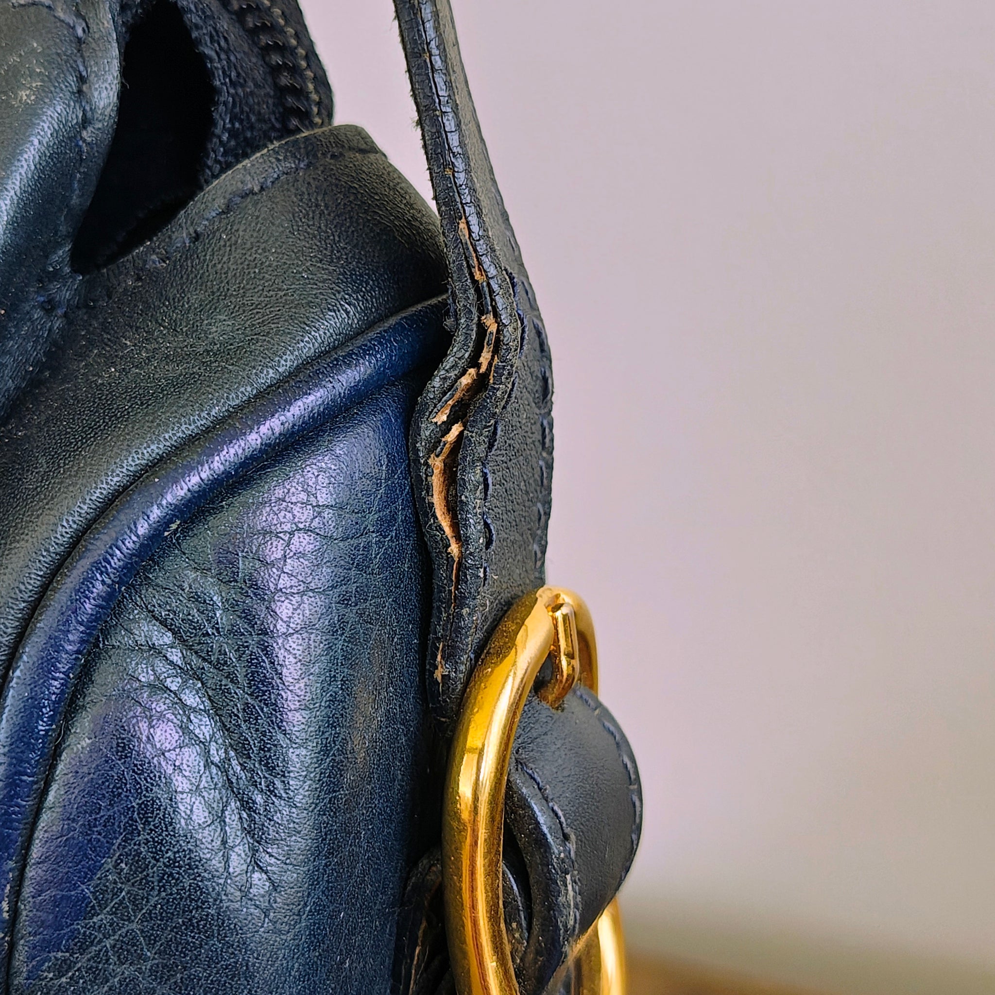 This vintage bag is a timeless classic with signature features, including an interior zip pocket and suede interior. Works well as a shoulder or crossbody bag.