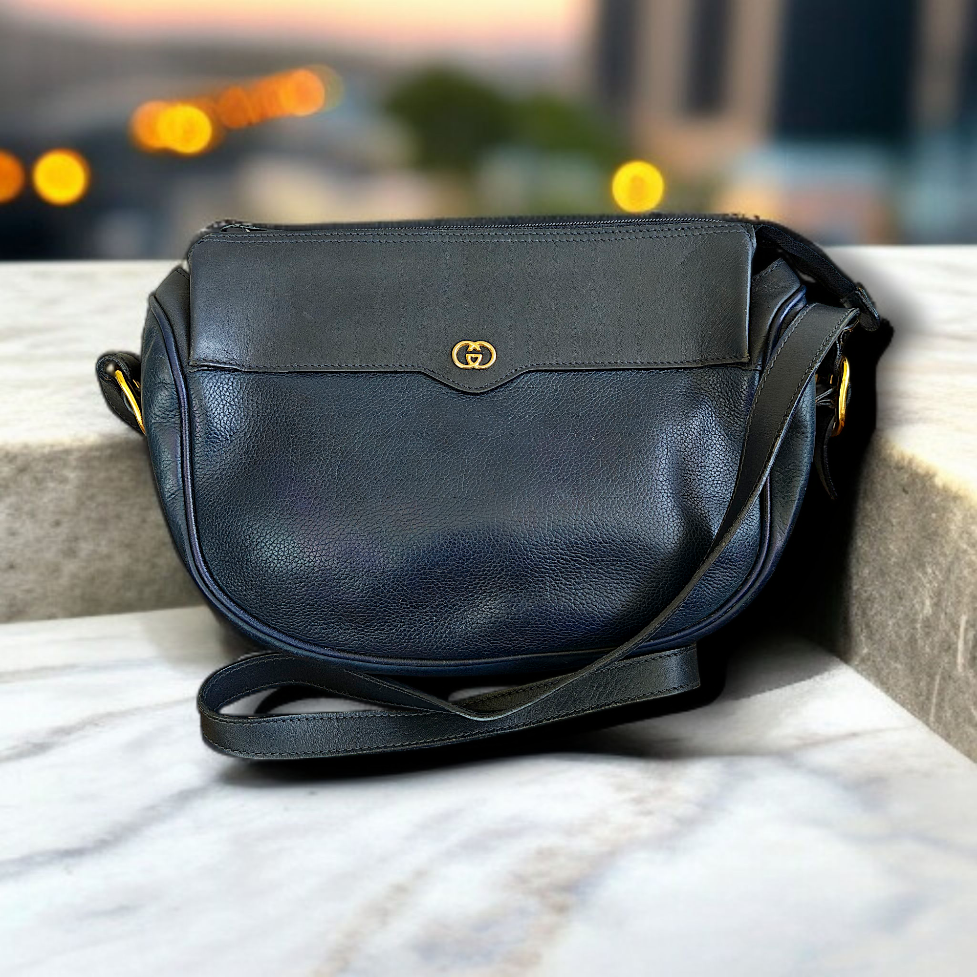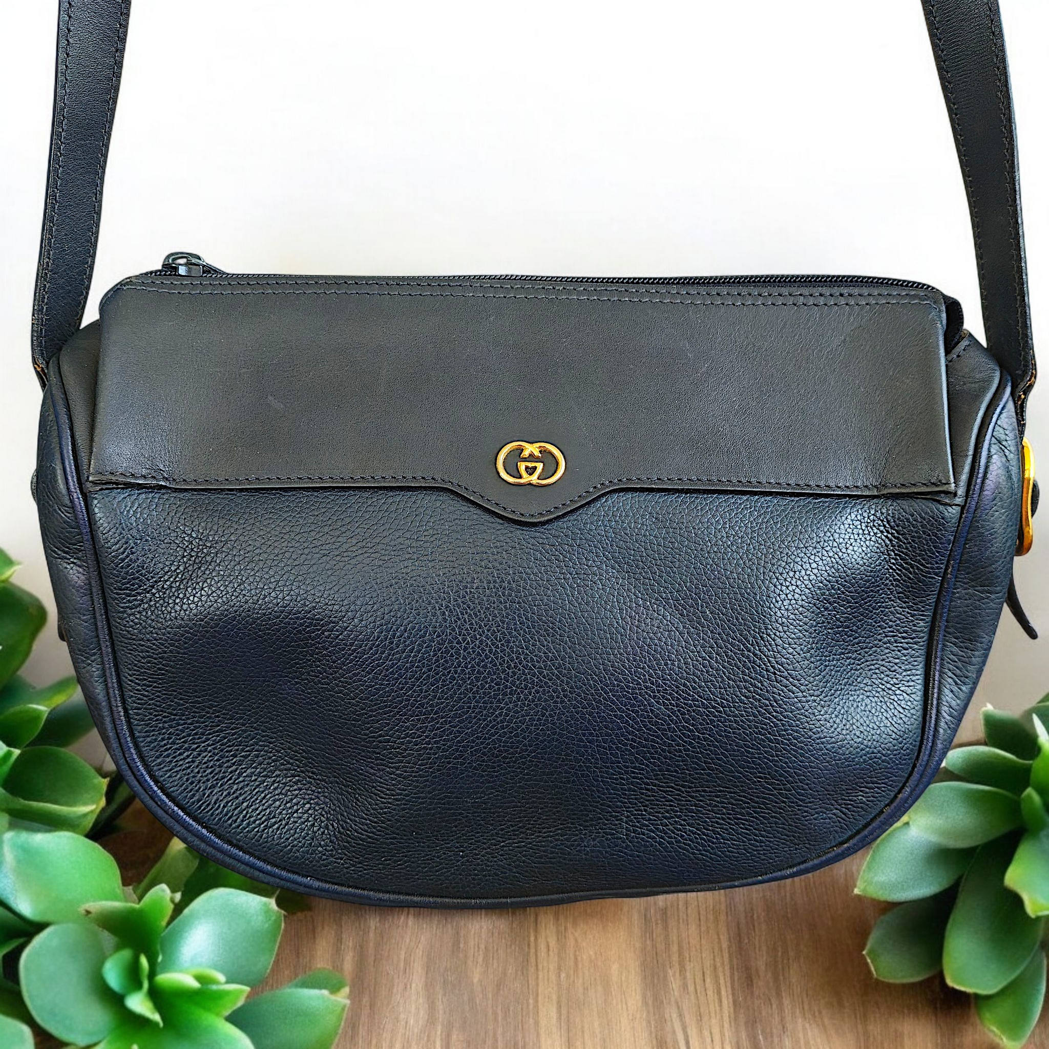 Classic Gucci bag made in black leather with iconic interlocking G logo.