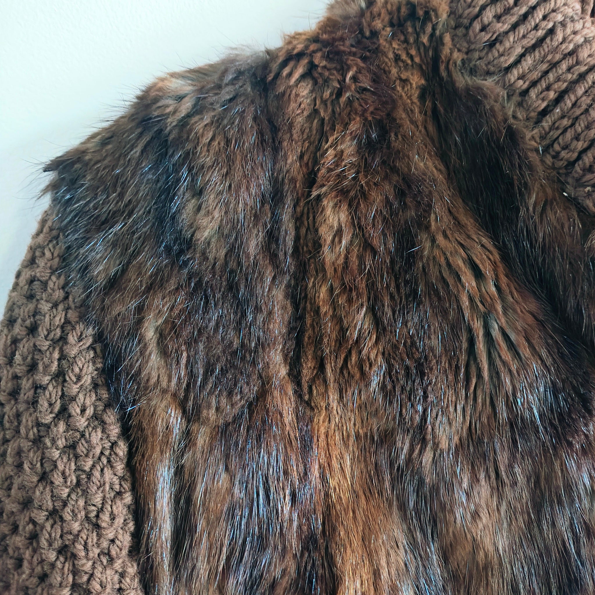 Vintage mink fur sweater jacket, a style characterized by a real mink fur body paired with chunky knitted wool sleeves and collar.