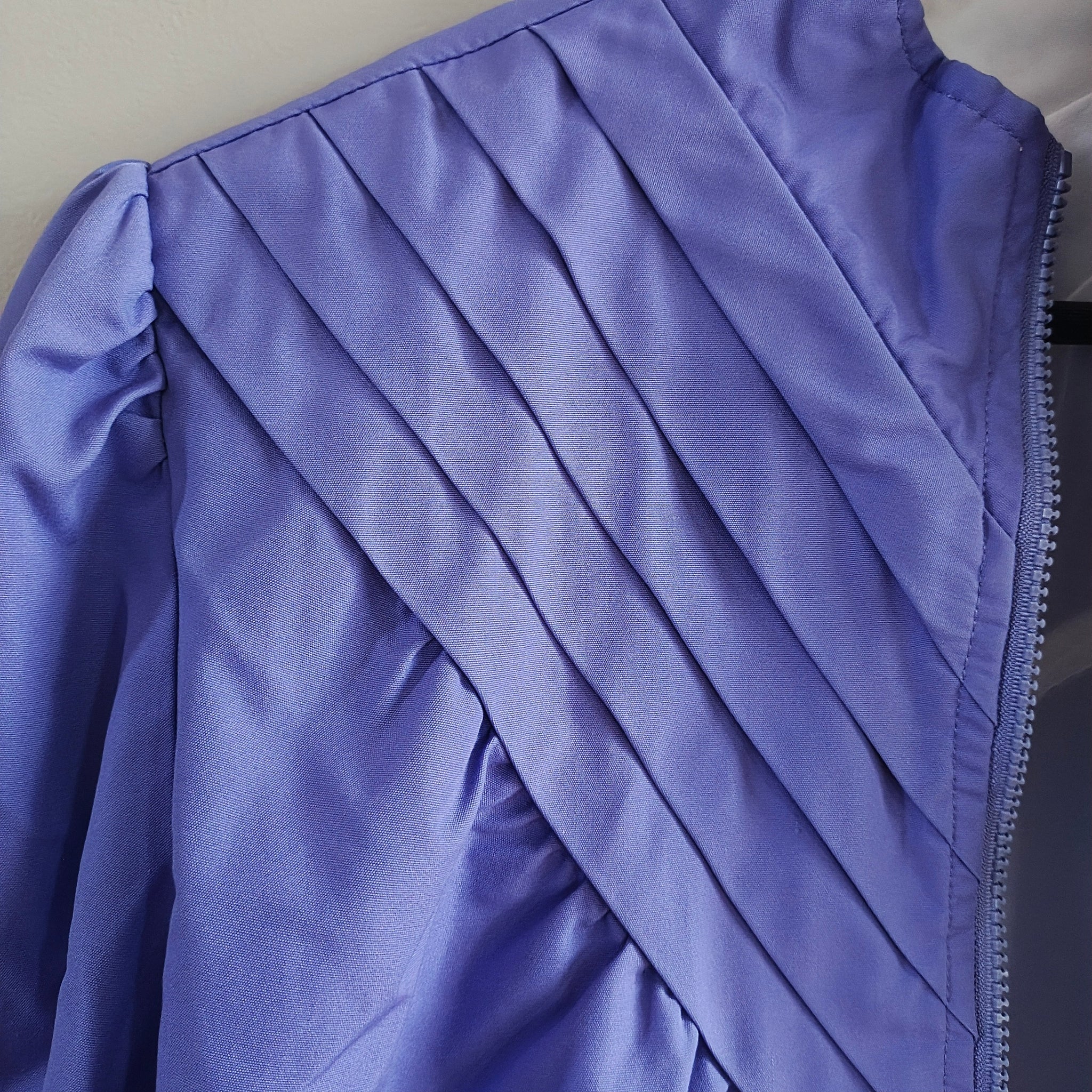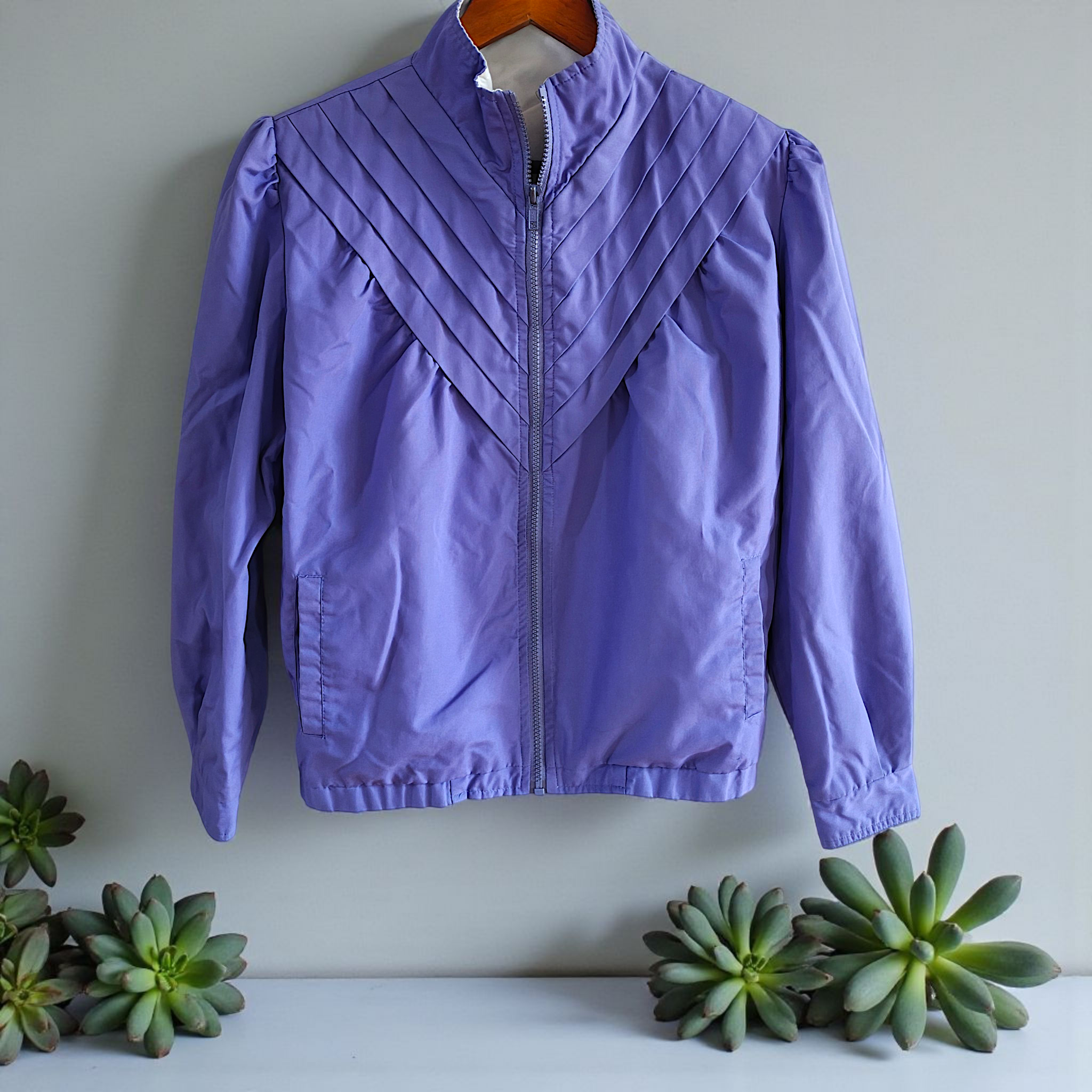 Design Details: The most distinctive feature is the series of vertical, inverted pleats stitched into a V-shape on the front of the jacket, giving it a structured, geometric accent.