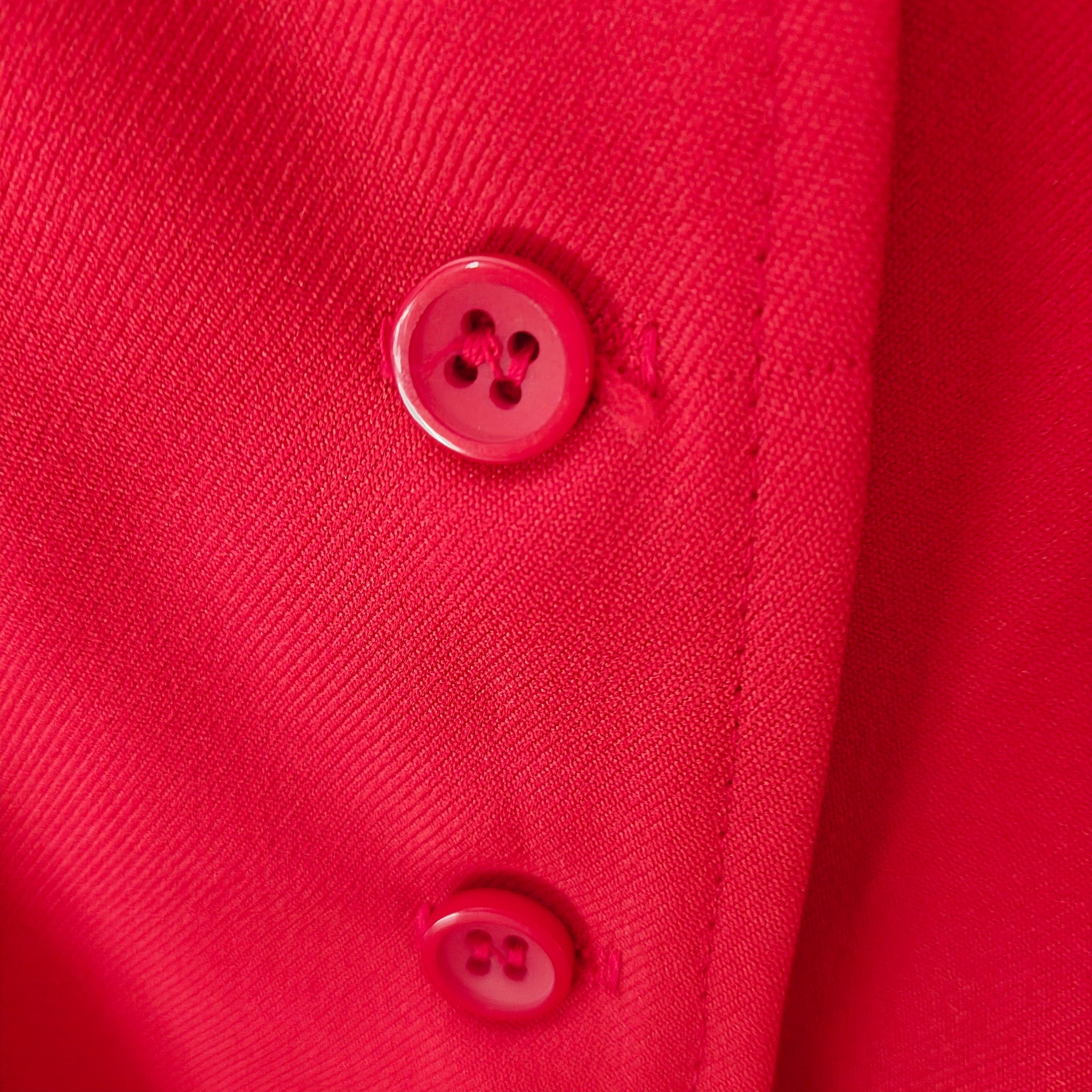 Details: It features large patch pockets with flap details on the front hips and a single-breasted button closure. Unlined.