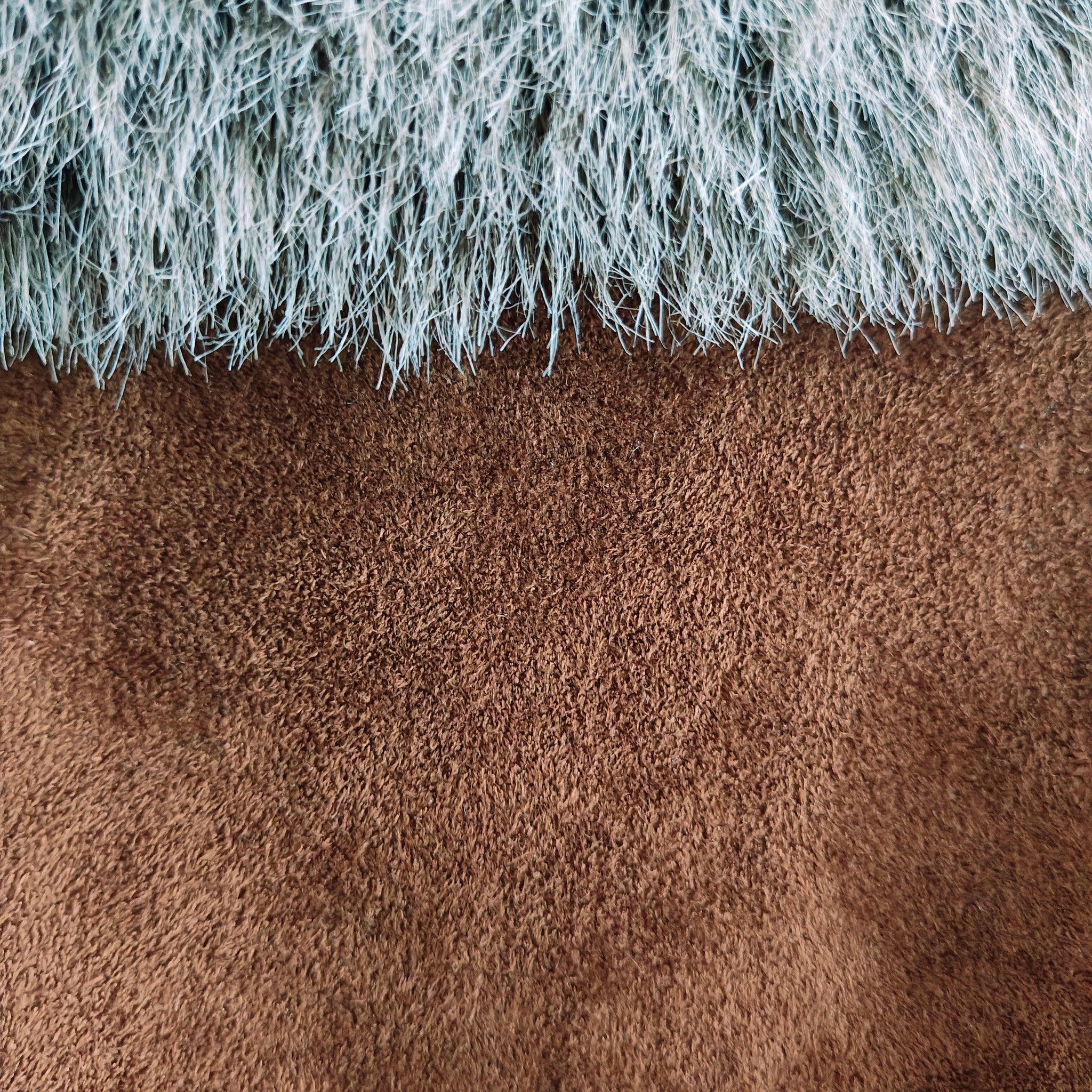 Material: Faux suede with a faux fur trim.