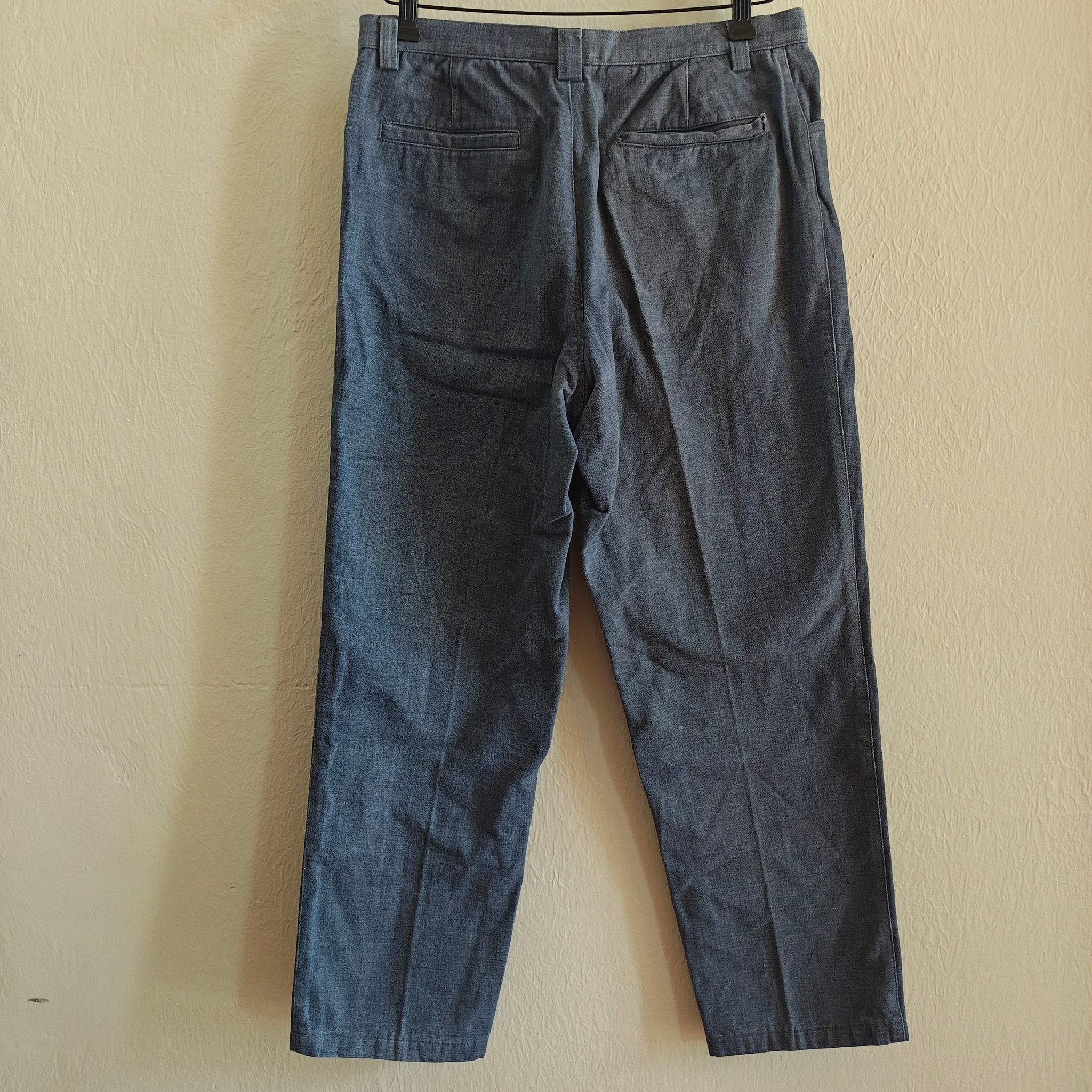 Vintage Versace pleated trousers in a gray or blue-gray marled denim.